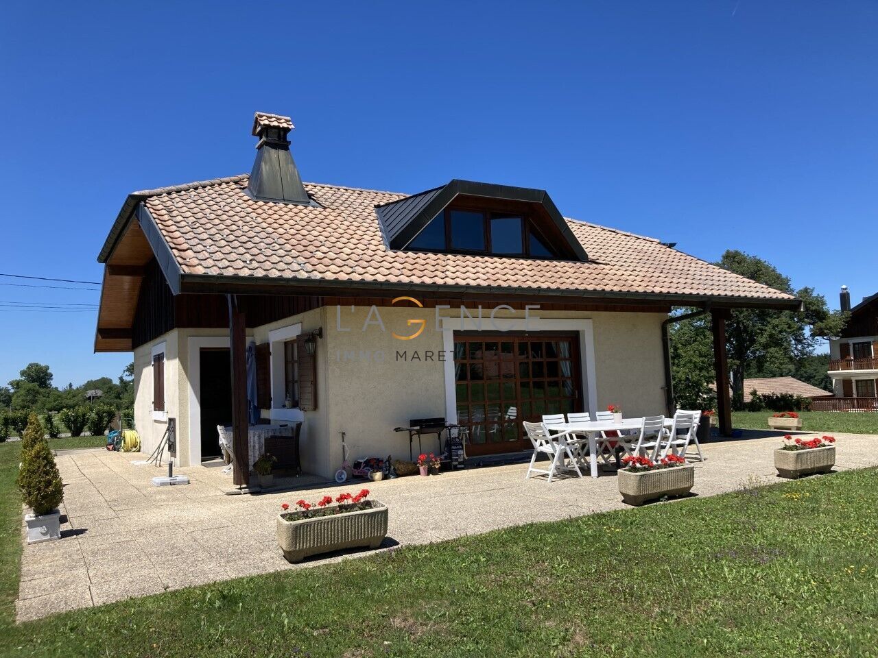 La proprietà offre numerosi vantaggi, a cominciare da una sala ricevimenti di 86 m² con camino, che gode di una vista mozzafiato sulla Dent d’Oche. Dispone inoltre di una sala da pranzo e di due ampi saloni accoglienti, ideali per organizzare serate o eventi familiari.